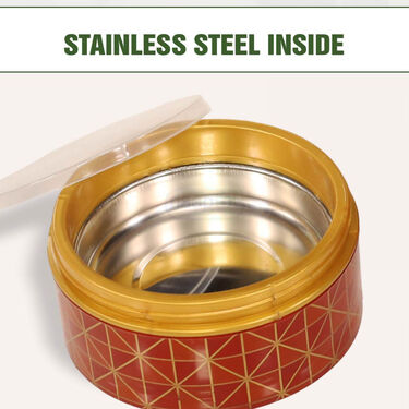 This 3-layer steel insulated lunch box offers a stylish and practical solution for carrying meals on the go. With its inner stainless steel construction, it ensures food remains fresh and maintains its temperature for hours. The stackable design allows you to separate different dishes, preventing spills and mixing. Each layer provides ample space, perfect for packing a variety of meals, from rice and curries to snacks and salads. Its ergonomic handle makes it easy to carry, whether heading to work, school, or a picnic. The sleek exterior is BPA-free and designed for everyday use. Easy to clean and maintain, this lunch box is a versatile addition to any mealtime routine.