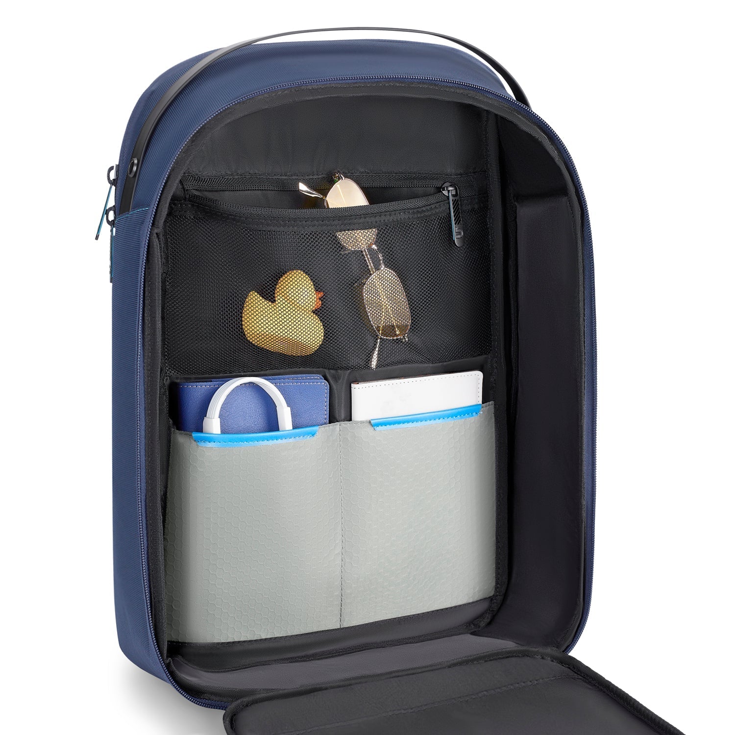 Meet your new travel companion - the Downtown Workpack. With lightweight, water-resistant fabric and a 180° flat-open main compartment, packing and accessing your belongings has never been easier. Plus, cushioned padding, an integrated luggage holder, and a dedicated laptop compartment make your commute comfortable and secure. Stay organized and stylish on the go.