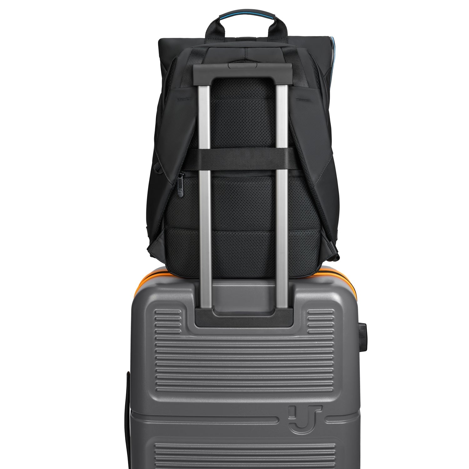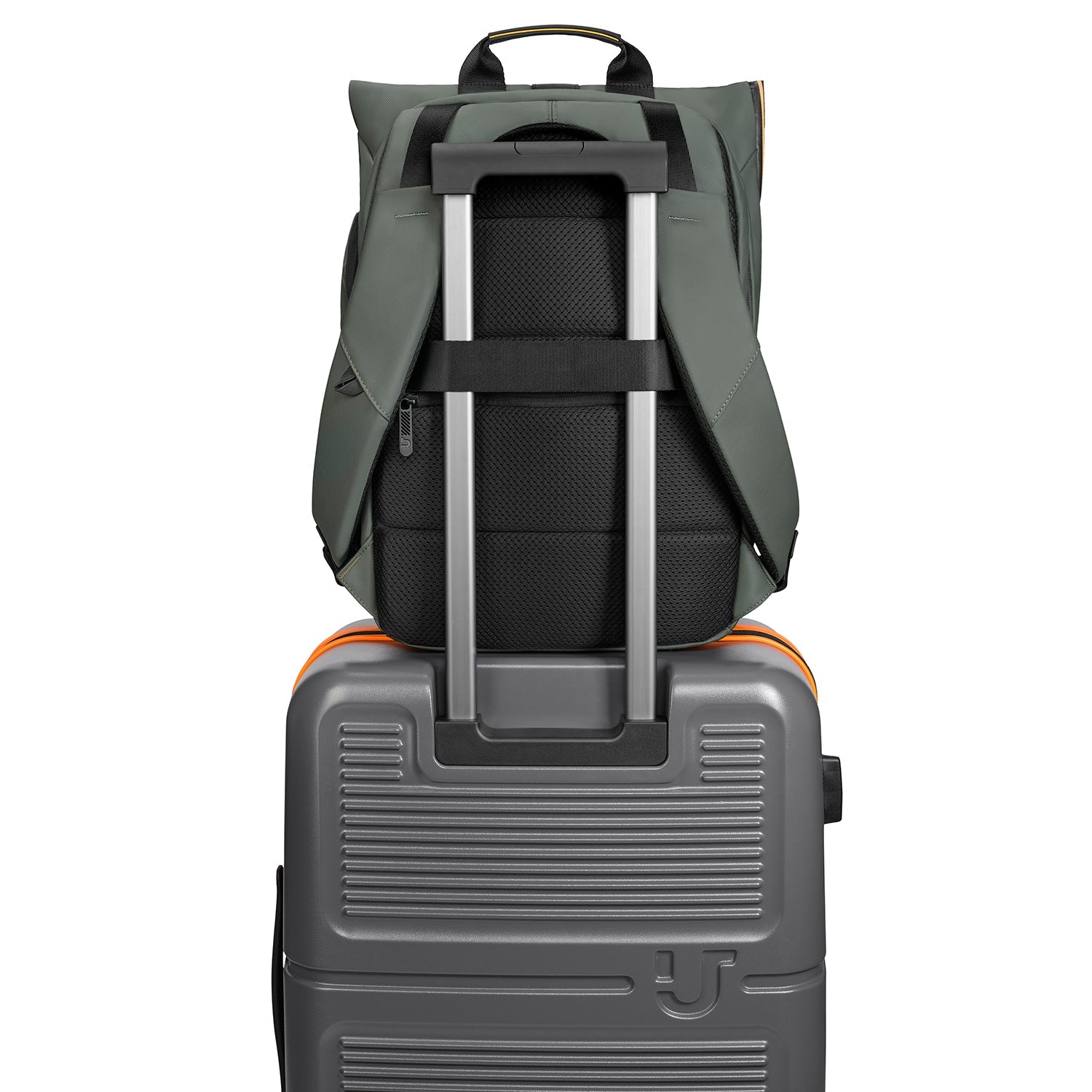 Streamline your daily commute with the Venture Workpack. Its lightweight, water-resistant fabric allows for easy transportation, while the unique fold-top and adjustable strap offer increased storage space. Stay organized with front and side pockets, plus a hidden pocket for valuables. The cushioned padding and integrated luggage holder make for a comfortable and hands-free journey.